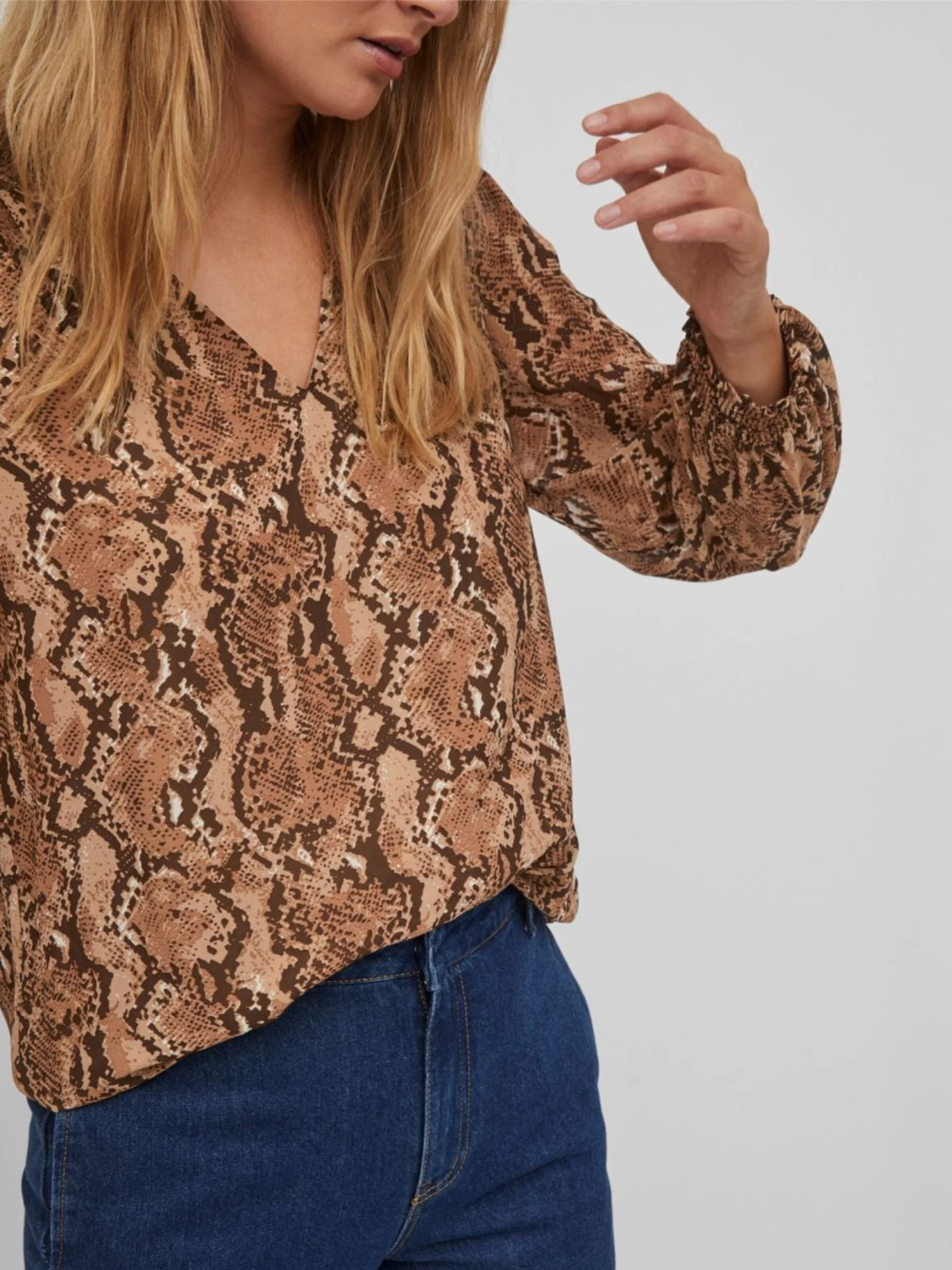 Vila Blouseshirts Blouse Dames Bruin Gemêleerd