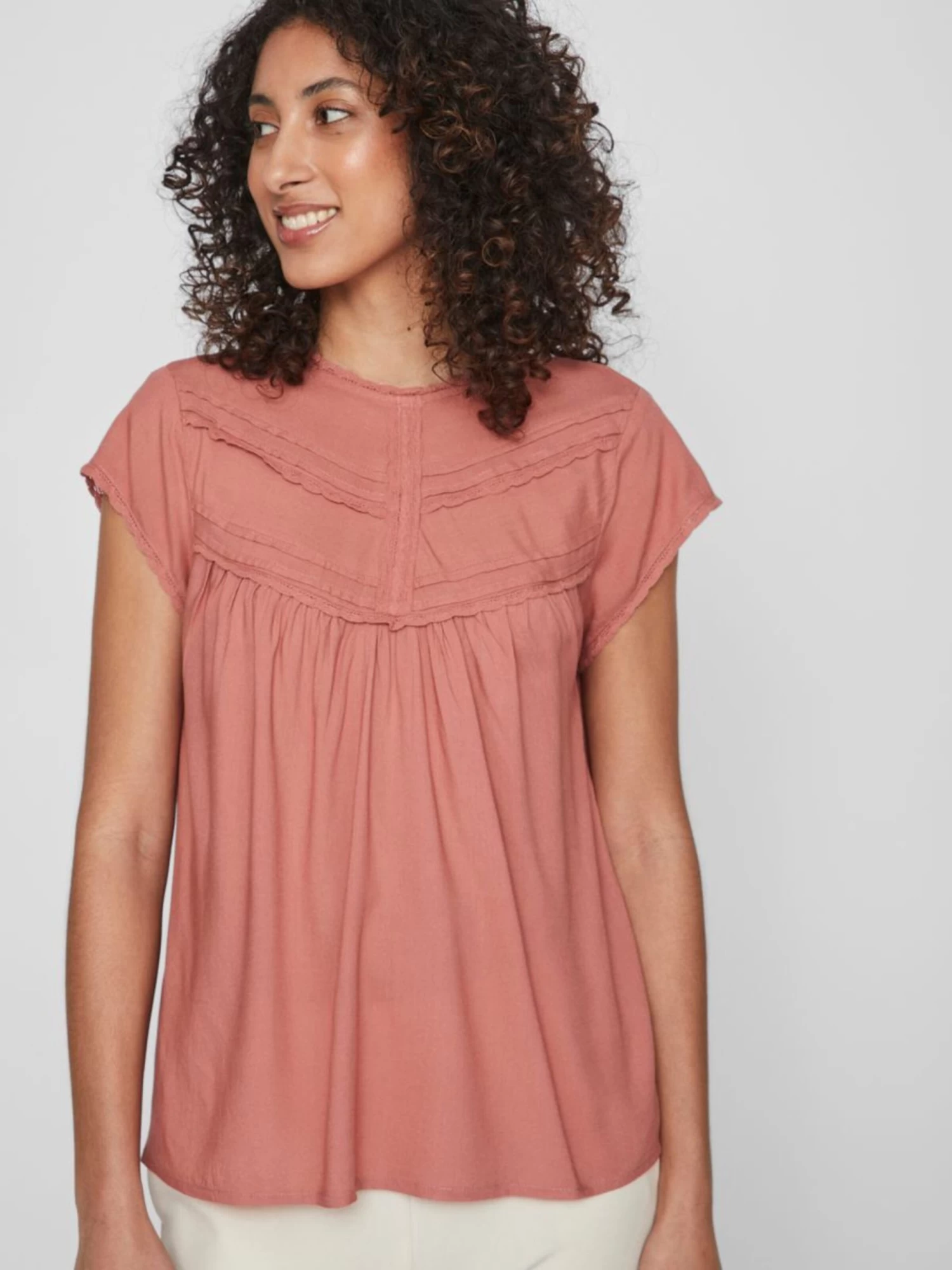 Vila Kanten Blouses Blouse Dames Pastelrood