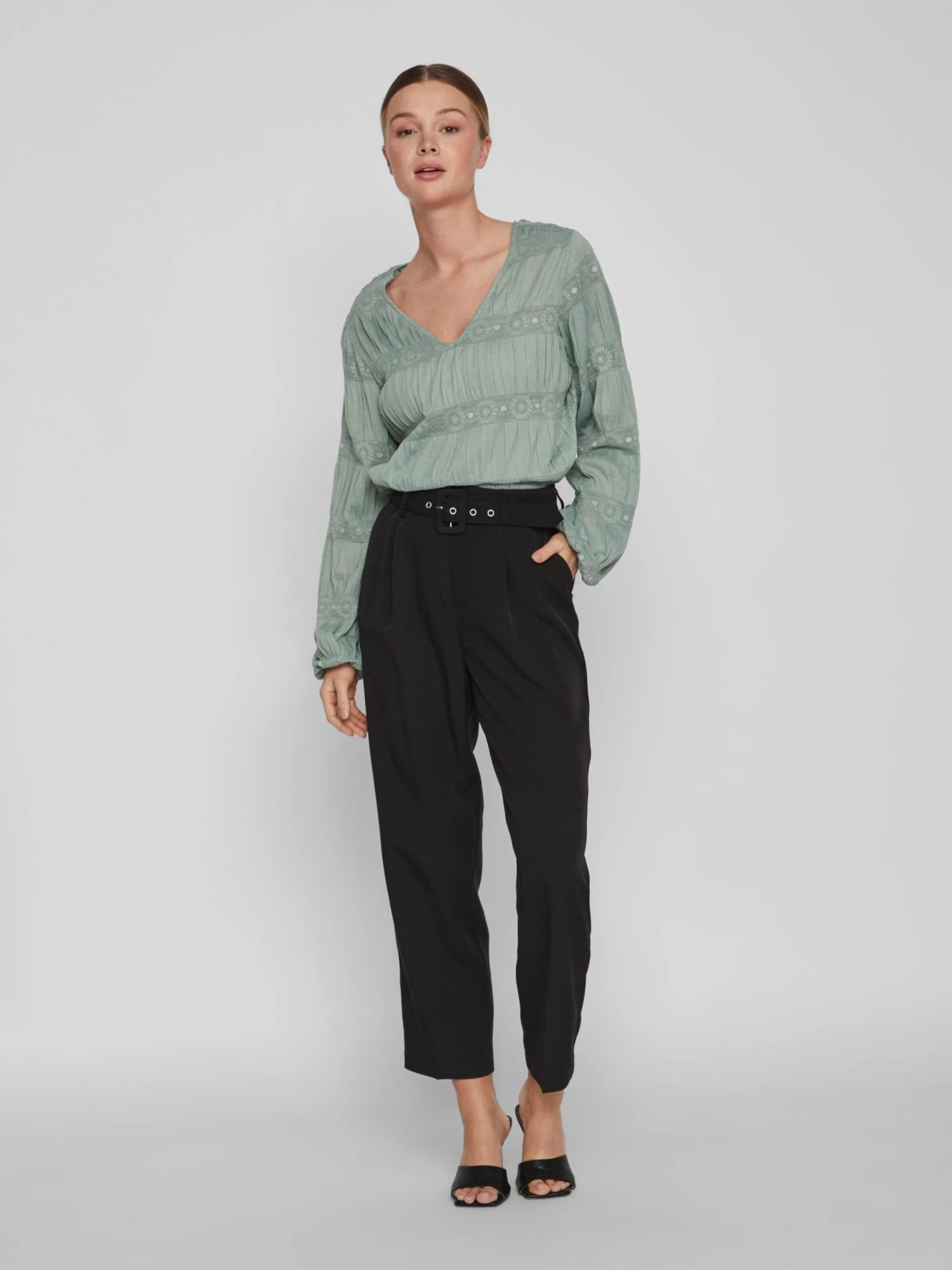 Vila Kanten Blouses Blouse Lea Dames Pastelgroen