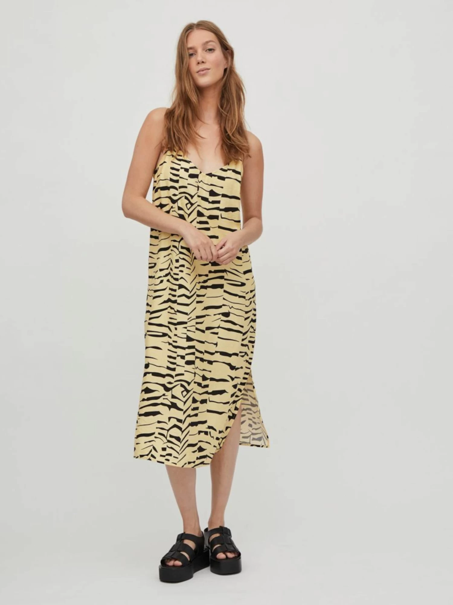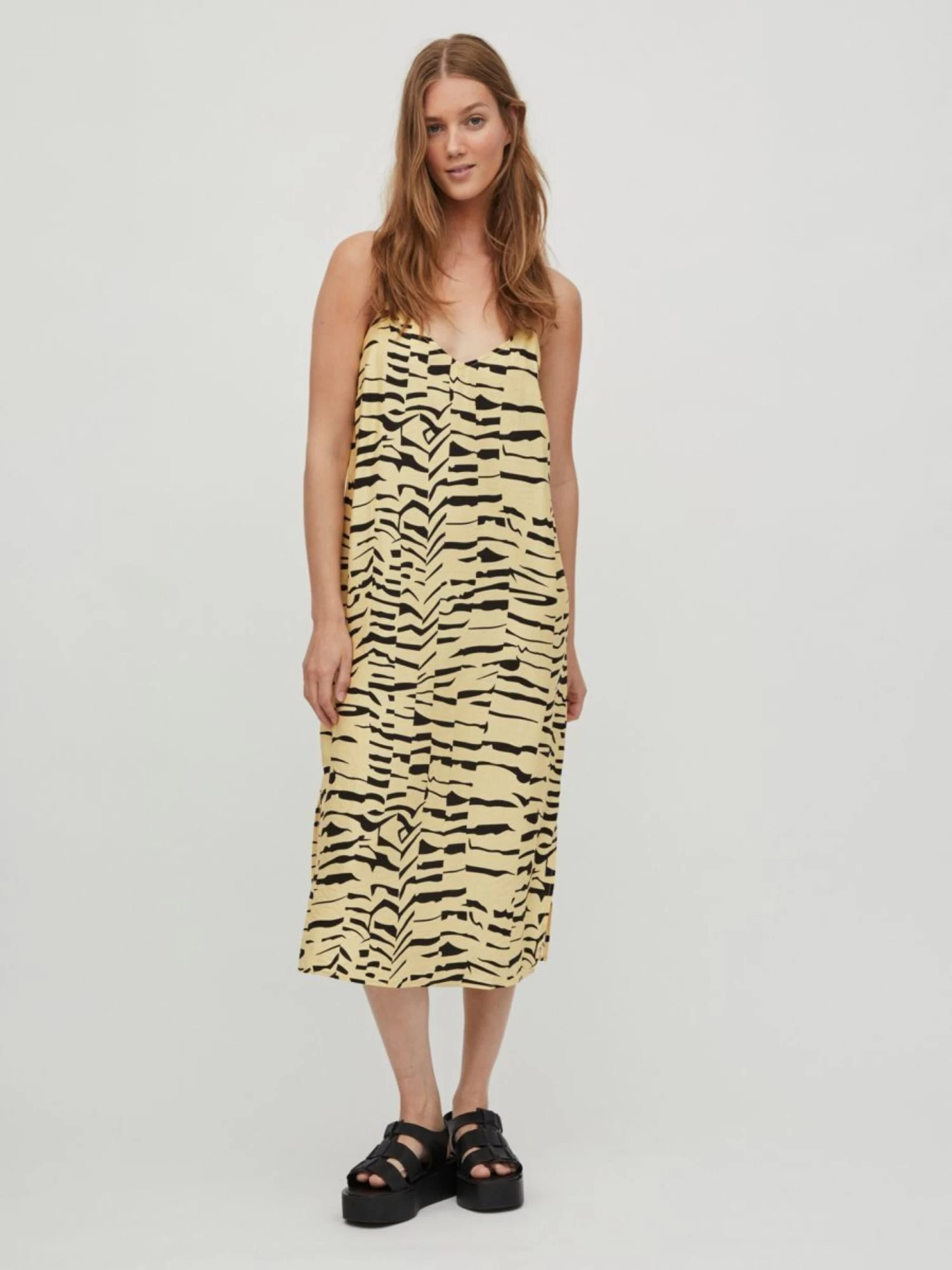 Vila Midi Jurken Jurk ALINIA Dames Pasteelgeel